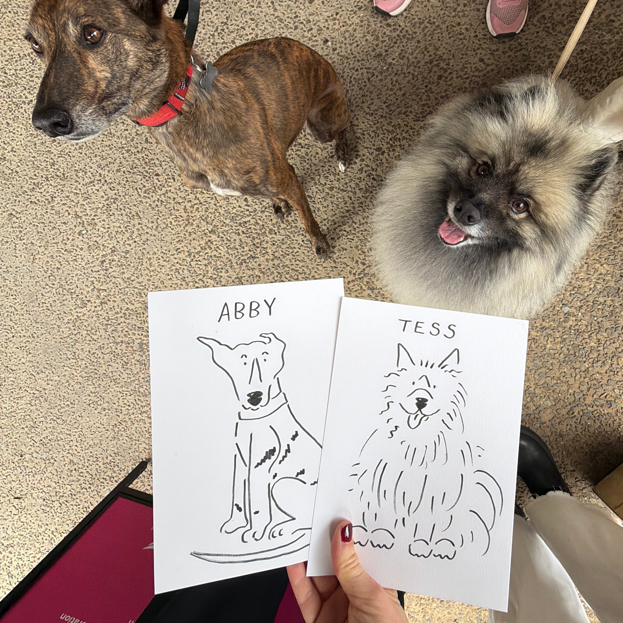 Custom portrait illustrations of pets and people.